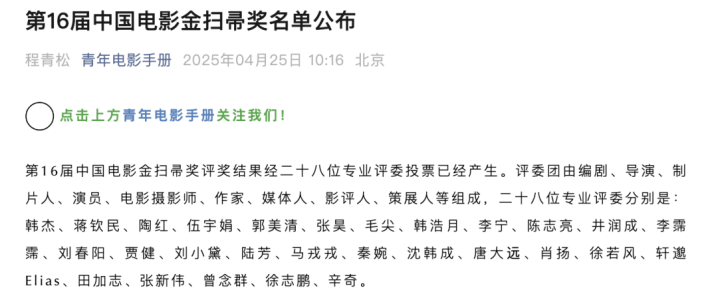 据介绍,金扫帚奖是由《青年电影手册》主办发起的华语电影史上首个为年度最差影片颁发的奖项。此前,林志玲、杨幂、张柏芝、景甜、刘亦菲等都当选过最令人失望女演员,肖战、李现、郑恺、邓超、甄子丹、孙红雷等当选过最令人失望男演员,最令人失望导演中郭敬明、郭德纲、毕志飞、王宝强、王晶、冯小刚、张艺谋、陆川均有上榜。